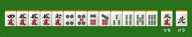 切りで三色が確定する自摸は愚形聴牌も含めると、。なのでここでは自摸切りでしょうか。