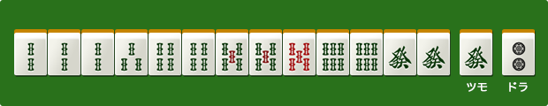 鳴き問題。テンパイをダマで回していたところ、上家から發が出ました。ポンなら切る牌を、スルーなら發を選択して下さい。
